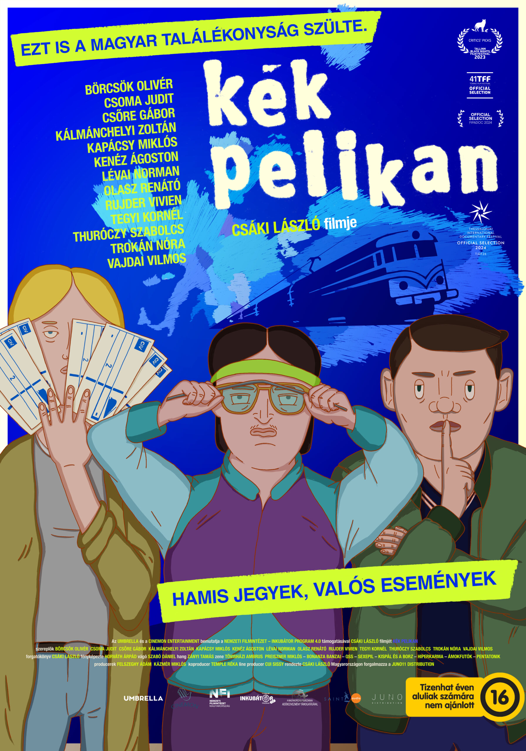 1989 forintos jegyekkel, filmzeneklippel és közönségtalálkozóval ünnepli a Kék Pelikan a Magyar Köztársaság kikiáltásának 35. évfordulóját október 23-án. A filmet forgalmazó JUNO11 Distribution akciójának az Art+ Cinema, a Cirko-Gejzír és a Bem Mozi ad otthont. „…a mai naptól, 1989. október 23-ától országunk államformája és neve Magyar Köztársaság” – itt indul Csáki László első egész estés animációs dokumentumfilmje, a Kék Pelikan hőseinek története, akik a hirtelen megnyílt határokon keresztül hamis vonatjegyekkel indulnak Nyugatra. A Köztársaság kikiáltásának 35. évfordulóját a Kék Pelikan 1989 forintos mozijegyekkel ünnepli: október 23-án, szerdán az akcióban résztvevő Cirko Gejzír mozi 14:45-kor, az Art+ Cinema pedig 17 órakor indítja Csáki László rendező bevezetőjével a vetítést – míg a Bem Mozi 19 órás előadását közönségtalálkozó is követi, ahol a direktor a film kulisszatitkairól és mozis útjáról mesél majd. A Kék Pelikan április 4. óta van a hazai mozik műsorán, azóta közel huszonötezer néző látta. A film a nemzetközi porondon is megmérettetett: világpremierjét tavaly év végén a Tallinn Black Nights Filmfesztiválon tartotta, azóta pedig többek között olyan jelentős nemzetközi seregszemlékre kapott meghívást, mint a torontói Hot Docs, a világ legjelentősebb animációs filmfesztiválja, az Annecy Fesztivál, a DOK Leipzig vagy a kolozsvári Filmtettfeszt. Számos fesztiválon díjazták is: fődíjat nyert Tel Avivban az Animix Nemzetközi Animációs Filmfesztiválon, a legjobb egész estés animációs filmért járó Pulcinella-díjat hozta haza a pescarai Cartoons On The Bay Fesztiválról, a fiatal zsűri díjjal jutalmazta a DocsBarcelona fesztiválon, a zsűri különdíját kapta a kassai IFF Art Film Festen és a zágrábi Animafesten, szakmai különdíjat és közönségdíjat nyert Poznanban az Animator Fesztiválon, de szerepel az Európa Filmdíjért versenyző legjobb dokumentumfilmek rövidített listáján is. Legutóbb a múlt hétvégén Bukarestből tért haza díjakkal: az Animest Nemzetközi Animációs Filmfesztiválon a legjobb játékfilm és tinédzser zsűri díját is elnyerte. A valós eseményeket feldolgozó, felnőtteknek szóló animációs dokumentumfilm sok humorral és korabeli zenékkel meséli el, hogy hogyan oldották meg okosba’ az utazást a kilencvenes évek csibészei. A Kék Pelikan igazi nosztalgiautazás, amelyen a felidézett tárgyak vagy olyan korabeli zenék segítségével vehetnek részt a nézők, mint az Induljon a banzáj! a Bonanza Banzai-tól, a Lidocain a Hiperkarmától vagy a Húsrágó hídverő a Kispál és a Borztól. A film eredeti zenéjét Tövisházi Ambrus és Preiszner Miklós szerezték – az alkotók most egy remix erejéig, amelyhez videóklip is készült, ízelítőt adnak a készülő filmzenei album anyagából. https://youtu.be/SCgiVmxRQTI A Kék Pelikan című egész estés animációs film írója és rendezője Csáki László, producere Felszeghy Ádám és Kázmér Miklós. Az operatőr Horváth Árpád, a vágó Szabó Dániel, a zeneszerző Tövisházi Ambrus és Preiszner Miklós. A film a Nemzeti Filmintézet támogatásával az Umbrella Entertainment produkciójában, Temple Réka koproducer szakmai támogatásával és a Cinemon Entertainment gyártásában készült. A Kék Pelikan a JUNO11 Distribution forgalmazásában április 4-étől látható a hazai mozikban. https://www.facebook.com/events/856983673291113